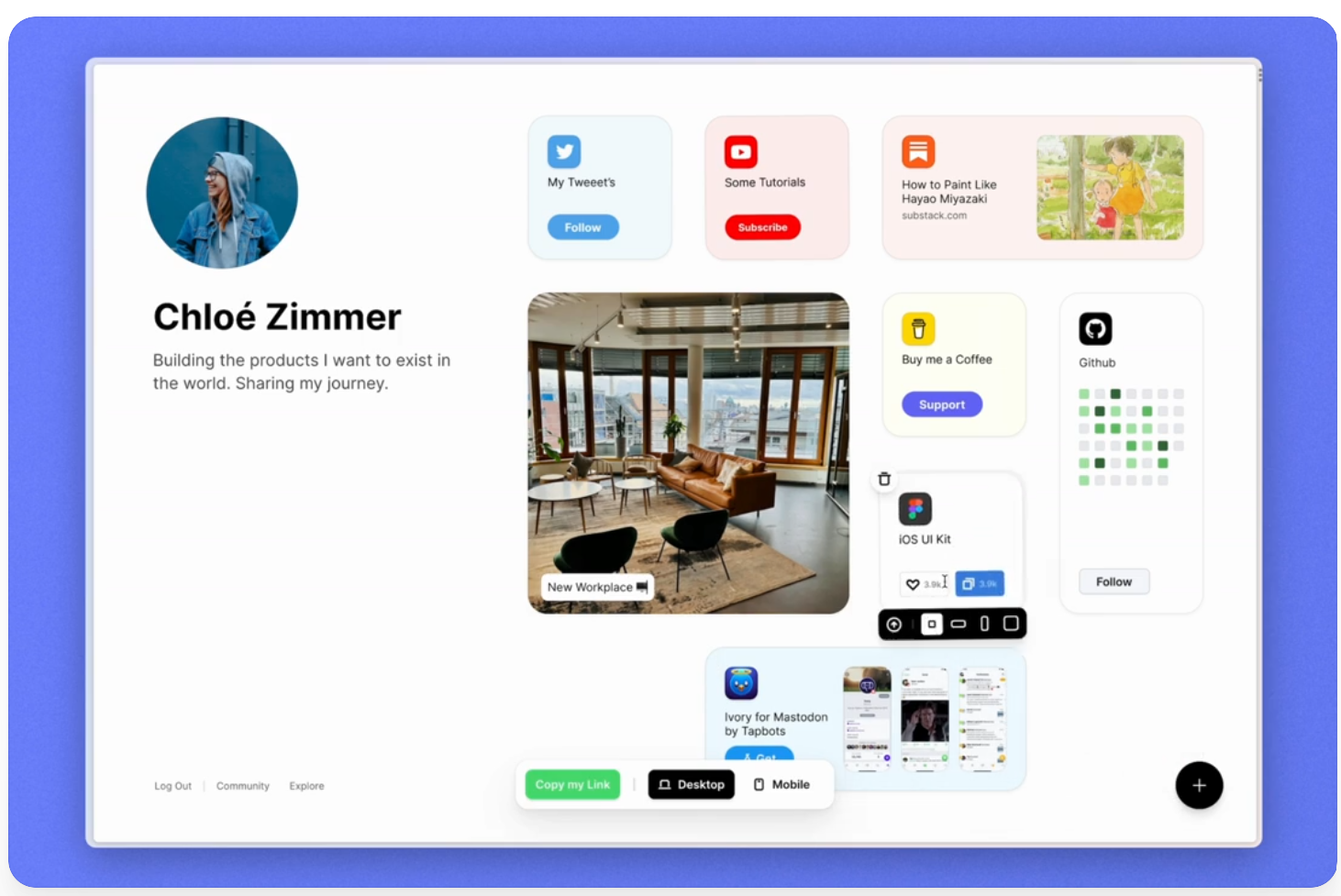 可以在上面放你的社群鏈接，群組，作品集